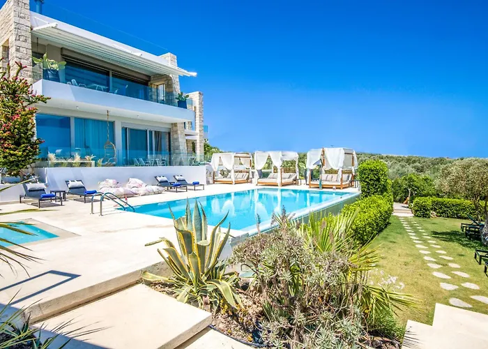 Do dyspozycji Gości są miejsce do jedzenia, a także urządzenie do parzenia kawy/herbaty. Dostępne udogodnienia obejmują kuchenkę mikrofalową, czajnik elektryczny i lodówkę. Goście mogą zjeść kolację restauracji Argonautis Fishrestaurant, w tylko 1 km. Położony w odległości krótkiej przejażdżki od 6-pokojowej willi dworzec Perivolia zapewnia opcje transportu w pobliżu. Aby urozmaicić swój pobyt, możesz skorzystać z parku wodnego, słonecznego tarasu i terenu zabaw, a nawet dołączyć do zajęć fitness. Do zwiedzania okolicy można wypożyczyć samochody, a także skorzystać z windsurfingu, nurkowania i jazdy na rowerze w okolicy.